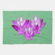 Paño De Cocina Rosa con flores de Lotus sobre fondo verde marino