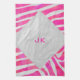 Paño De Cocina Rosa y blanco caluroso de cebra con monograma