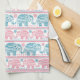 Paño De Cocina Rosa y modelo étnico verde azulado del elefante