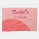 Limpie sus encimeras usando esta fabulosa toalla de cocina de personalizable. El semicírculo rojo, con un fondo rosado y rojo, se encuentra en la parte inferior izquierda de la toalla. El resto de la decoración es rosa. Su nombre está escrito en la parte superior en una fuente roja complementaria. "Cocina" está escrita con tu nombre en forma impresa. ¡personalizar tuyo hoy! Material gráfico original: © 2016, Rhonda Jones