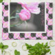 Rosas de jardín adornan esta toalla de té de la cocina con una silueta de ave. El texto de jardinería puede ser personalizado o extraíble. Elegante regalo de decorador de casa.
