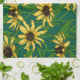Paño De Cocina Rudbekia amarilla en verde oscuro
