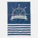 Paño De Cocina Rueda Náutica, franjas azul de la marina