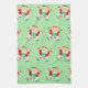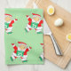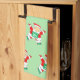 Unique running track-and-field Christmas holiday kitchen towel featuring funny Mrs. Claus runner racing pattern.