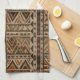 Warm geometric stripe pattern kitchen towel featuring tribal-inspired diamonds, zigzags, and textured vertical bands in earthy brown, terracotta, tan, beige, and charcoal tones. A cozy boho design ideal for southwestern décor lovers, rustic style fans, and anyone drawn to earthy, handcrafted aesthetics.