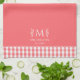 gingham rosa de coral blanco, monograma de personalizado rústico de una casa de campo, toalla de cocina personalizada personalizada, patrón de comprobación de nombres personales, manteles a cuadros elegantes, añádase su propio texto, apellido de familia roja, patria pintoresca inicial, chef sencillo clásico tradicional, hoja de trigo de cocina de campo