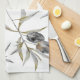 Bonita toalla de cocina rústica con ramas de olivo acuarelas pintadas a mano con acentos antiguos de oro