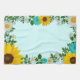 Toalla rústica con girasoles vibrantes, daises blancos tradicionales y flores verde azuladas sobre un fondo acuático claro con el aliento del bebé y acentos botánicos de vegetación