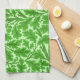 Toalla de cocina en un estilo Art Nouveau William Morris, patrón textil - hojas de roble y ramas en verde esmeralda profundo, acentuadas con negro, con fondo verde limón claro