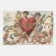 Ilustración antigua diseño victoriano del día de San Valentín con elementos antiguos con amor y romance querubines victorianos. Tres ángeles lindos volando alrededor de un gran corazón rojo con cintas y rosas rosadas flotando alrededor de ellos. "Para mi San Valentín".