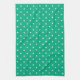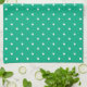 Seamless pattern of small, evenly spaced white polka dots on a solid teal or emerald green background.
