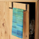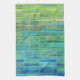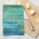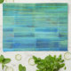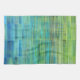 Toalla de cocina colorida en tonos azules, verdes, turquesas y frescos que recuerdan a agua fría o a cascadas naturales.