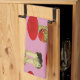 Toallas de cocina de estilo retro en rojo y rosa con ilustraciones de setas rojas botánicas vintage.