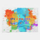La palabra hebrea "shalom" (que significa 'paz' pero también 'hola') en forma artística sobre una pintura colorida resalta el fondo.