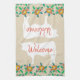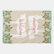 Toalla de cocina rústica estilo casa de campo con silueta de toro blanco y diseño de flores de campo.