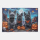 Descanse el espíritu espeluznante con este inquietante diseño de Halloween que presenta una manada de perros bajo un cielo oscuro, iluminado por la luna, rodeados de bates voladores y calabazas brillantes. Perfecto para los amantes de la diversión con sus peludos amigos.