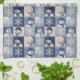 An enchanting pattern filled with delightful snowmen and sparkling snowflakes, beautifully set against a blue and white quilt background