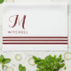 Paño De Cocina Sofisticadas franjas blancas y rojas y monograma
