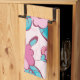 Brighten your kitchen with this whimsical floral botanical kitchen towel, featuring a delightful pattern of pink and blue flowers and leaves. The playful design adds a touch of charm to any culinary space, making everyday tasks a little more cheerful. This absorbent towel is perfect for drying dishes, wiping counters, or even as a decorative accent piece. The vibrant colors and intricate details of the floral arrangement create a visually appealing and unique addition to your home decor. Enjoy the blend of style and functionality with this beautiful kitchen towel.