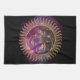 Sol dorado y overlay lunar sobre fondo celeste oscuro morado violeta