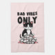 Envía tu lado atrevido y acogedor con esta llamativa toalla de cocina con un gato encarnizado rodeado de cráneos. La audaz frase 'Sólo malas vibraciones' agrega un giro rebelde, perfecto para los amantes de los gatos que adoptan una estética oscura y gótica. Este diseño único es ideal para los amantes de combinar el encanto felino con el arte atrevido y creativo.