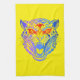 Este vibrante ilustracion presenta la cara de un tigre en un diseño tribal con gruesos gradientes rojos, azules y morados. Los patrones detallados crean una apariencia feroz pero artística, ambientada en un fondo oscuro.