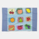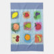 El diseño es de diferentes tipos de fruta, dibujada sobre un fondo azul y cada fruto sobre un fondo de colores. También hay otros productos con el mismo diseño para tu cocina. Esta imagen está disponible en una variedad de otros productos, sólo tienes que hacer clic en el enlace debajo de la foto cerca de 'Acerca de este diseño'.