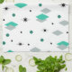 An atomic era styled mid century modern pattern with classic 1950s abstract art elements such as diamonds and stars.