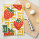 Strawberry red and green on gold Greek Key seamless pattern gives a rustic farmhouse French country artisan feel women will love.