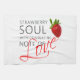 Berry de fresa roja con hojas verdes y un texto alma de fresa con nota dominante del amor. Una especie de camisetas, huellas y regalos para todos. El amor y el romance. Productos y souvenirs horizontales o orientados al paisaje.