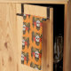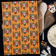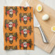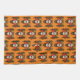 Un gran búho de cuernos marrones con un día de cráneo de azúcar muerto y rosas rojas en un telón de fondo de naranja.