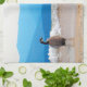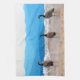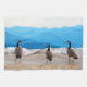 Una representación digital de tres Geeses de Canadá contemplan dirigirse hacia el surf entrante a la orilla del lago Pend Oreille en Sandpoint, ID; las montañas azules están a lo lejos.