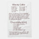 Texto marrón oscuro sobre toalla de cocina blanca. Recetas de pastelería y picadura de chocolate. ¡Ambos en una toalla!