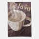 Una toalla de cocina perfecta para los amantes del café, así como, cafés, con ilustraciones del vintage de una taza de cocido al vapor al vapor caliente de café en colores de tono calientes, ricos de la tierra. El término popular de los mediados del siglo XIX, "Java", se añade como referencia especial.