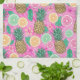 PAÑO DE COCINA TEMA DE LA PLAYA DE VERANO TROPICAL ROSA Y VERDE
