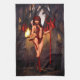 "Tempatía Infernal" Una muestra seductora se alza en un bosque sombrío, sus fieras alas se extendieron mientras ella blande una llama brillante y un tridente criminal. Vestida de rojo oscuro, exuda poder, peligro y encanto oscuro.