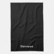 Minimalista Nombre personalizado texto toalla de cocina elegante en blanco y negro. Texto blanco, fondo negro.