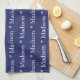 Nombre personalizado texto azul marino toalla de cocina de patrón blanco puede cambiar el nombre o el texto