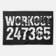 Texto desgastado y raspado Workout 247365 en color blanco con fondo negro. Perfecto para todo aquel que levante, haga ejercicio físico, entrenando, construyendo el cuerpo e ir al gimnasio.