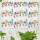 This fantastic illustration captures the pure joy of the Whos of Whoville preparing their holiday banquet! Five Whos, dressed in festive, colorful aprons and hats, march in a cheerful procession, gleefully balancing massive, colorful loads, including a huge yellow tureen, oversized serving domes, and dangerously tall stacks of small, brightly colored bowls. This whimsical scene perfectly embodies the chaotic but heartwarming spirit of the Whos' Christmas celebration!