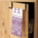 Añada un toque personalizado a su cocina con una elegante toalla de cocina de Sweater Weather. La toalla festiva tiene un patrón de suéter morado y blanco y un marcador de posición para su monograma personalizado.