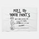 Tira hacia arriba tus pantalones Diseña camisetas, regalos y accesorios creados por Imagine That! El diseño presenta nuestro original dibujo en blanco y negro de un niño con las palabras en negro, "Tira hacia arriba tus pantalones", "Ten algo de decencia y respeto por los demás". Nadie quiere ver tu ropa interior. No se aplica a niños menores de 3 años. Levántate, levanta los pantalones y haz una declaración hoy.