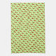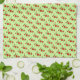 Pequeña estampación de arte floral en rojos, en toalla de mano verde apetitosa para la cocina o el baño.