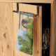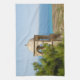 Detalle del campanario con pinos y vistas al mar en una isla mediterránea