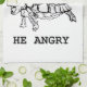Imagen creada a partir del uno de mis bosquejos originales. Muestra una tortuga dibujada mano con la boca abierta y las palabras: "No haga la tortuga enojada. ÉL ENOJADO." La imagen original está en tinta negra con el texto negro; la imagen para las oscuridades está en neón con el texto brillante.
