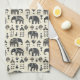 Rustic tribal elephant pattern kitchen towel featuring bold black elephant silhouettes, geometric motifs, and folk-inspired details on a neutral textured background. A stylish and timeless design ideal for safari lovers, boho décor fans, nursery themes, and anyone who loves ethnic-inspired art.