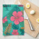 Paño De Cocina Tropical Hibiscus and Palm Leaf Pattern