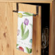 El diseño del producto presenta un patrón de flores de tulipán coloridas en morado, rojo, rosa, azul y amarillo. Este ilustracion botánico con texto personalizado hace una toalla de cocina moderna y única - Regalo para Pascua, Día de la Madre, y más!