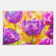 Tulipanes coloridos violeta, violeta y rosa sobre un lecho de flores. Prácticamente todos los colores del arcoiris presentes. Escena floral brillante y positiva. Fotografía macro.