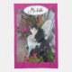Paño De Cocina Tuxedo Cat Maroon Dark Pink Cats and Flowers